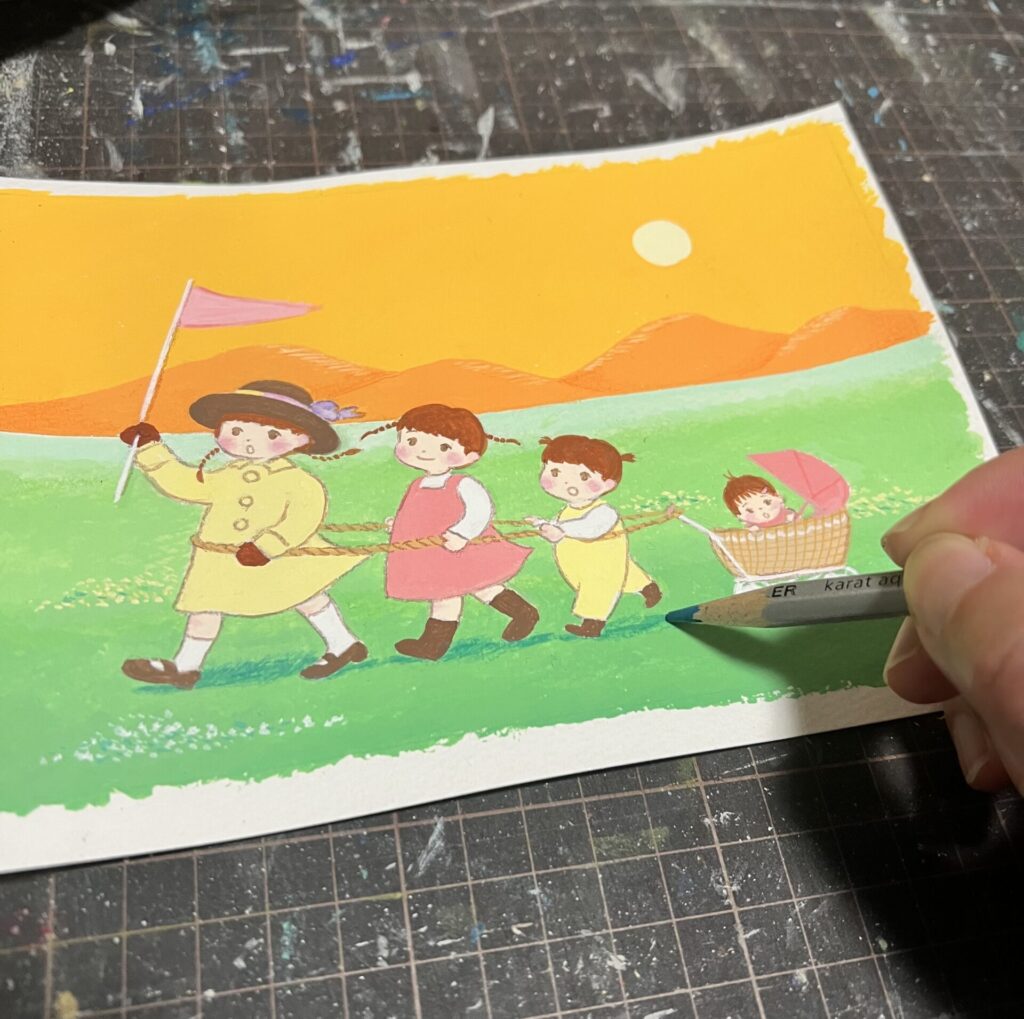 読む方にとって、文章を読み進めるなかでそっと寄り添うことの出来る絵が描けたらなと思いお仕事をしています。